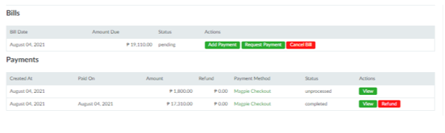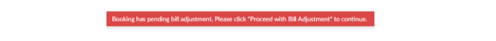 - Scroll to the bottom of the booking details page and click the Proceed with Bill Adjustment button. This will add another payment entry under the Payments section. Note that if the bill has already been settled before, a bill adjustment will bring the bill back to Pending status: