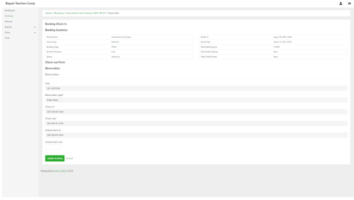 4. Provide the date of the actual check out. When done, click the Update Booking button.