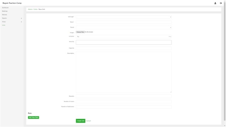 1. In the list of units page, click the New Unit button. This will open the Create New Unit page.