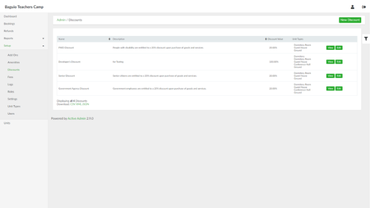 List of Discounts page can be accessed through the side navigation pane by clicking Setup > Discounts.