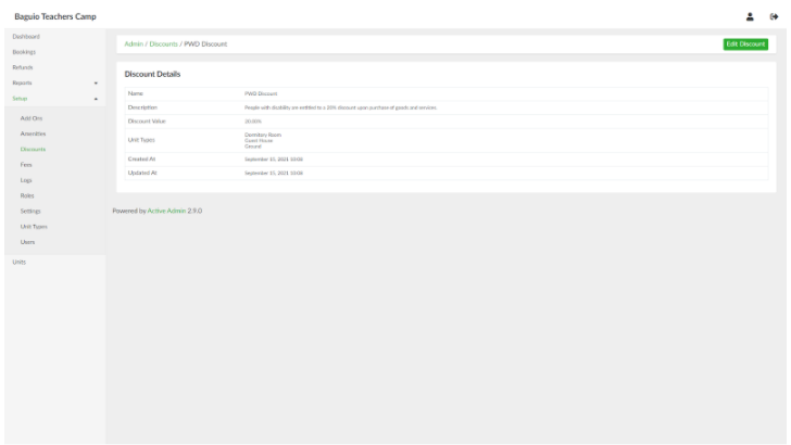In the list of discounts page, select a discount and click
