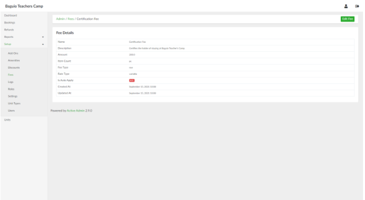 In the list of fees page, select an amenity and click