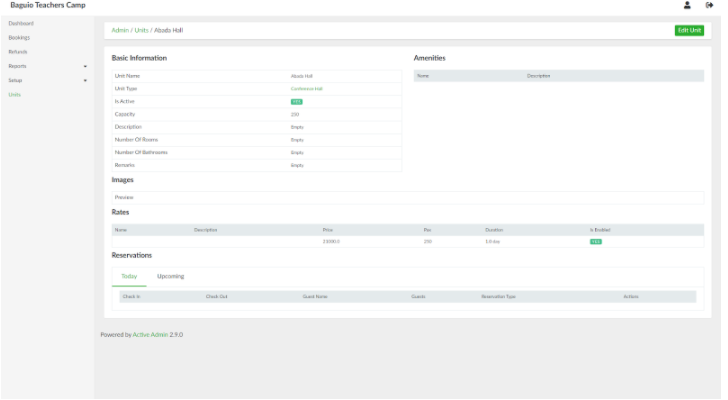 1. In the List of Units page, select the desired unit and click the View button. This opens the Unit details page: