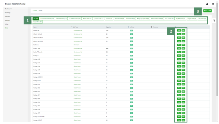 1. In the side navigation pane, click Units. This will open the List of Units page: